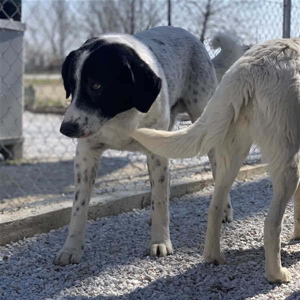 Kniffel ist ein wunderschöner Rüde, der mit seiner besonderen Fellzeichnung direkt ins Auge fällt. Sein weißes Fell ist mit vielen schwarzen Punkten und Flecken in unterschiedlichen Größen bestückt. Kniffel besitzt auch eine sehr schöne zweifarbige Fellzeichnung am Kopf und einen niedlichen Hundeblick. Insgesamt ist der junge Rüde ein richtig toller Kerl, der sich lieb und sehr menschenbezogen zeigt und auch verträglich gegenüber seinen Artgenossen. Kniffel liebt die Zuneigung von Menschen und genießt jede Streicheleinheit. Mit viel Liebe und Geduld wird sich der charmante Rüde zu einem wundervollen Begleiter fürs Leben entwickeln. Kniffels neue Lieblingsmenschen sollten einen sicher eingezäunten Garten zum Spielen und Üben besitzen. Wenn Sie Kniffel ein schönes Leben schenken möchten, freuen wir uns sehr auf Ihre Anfrage!