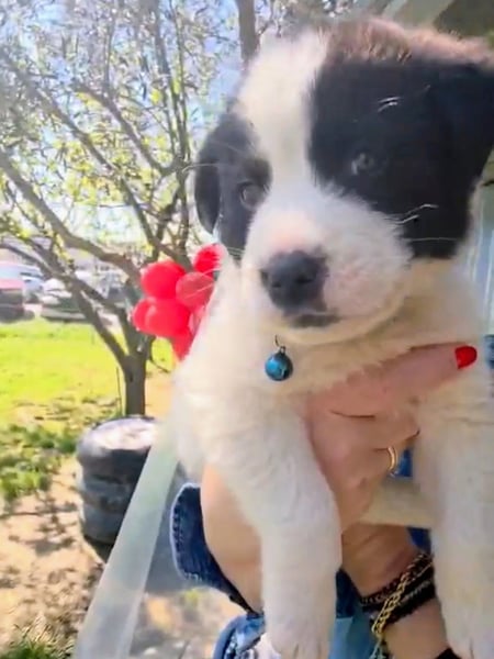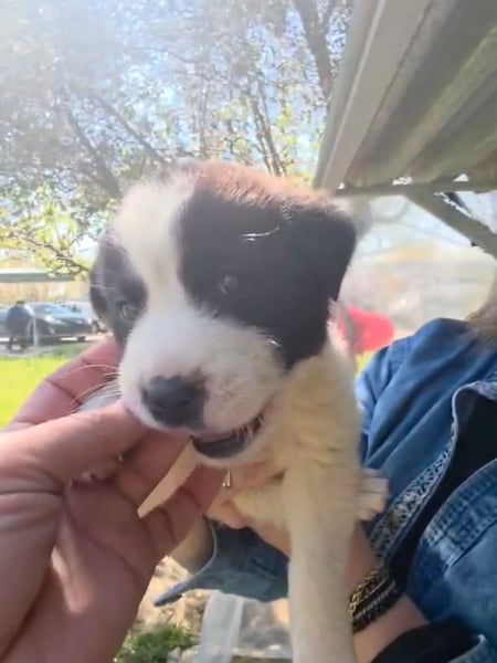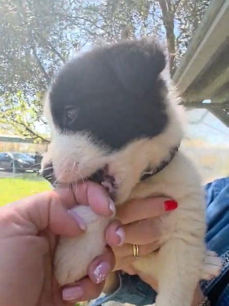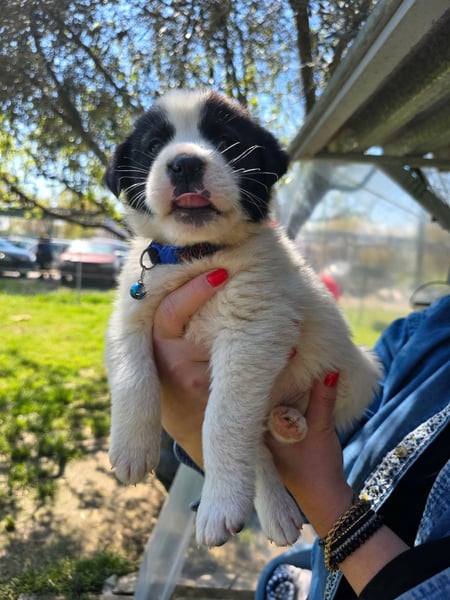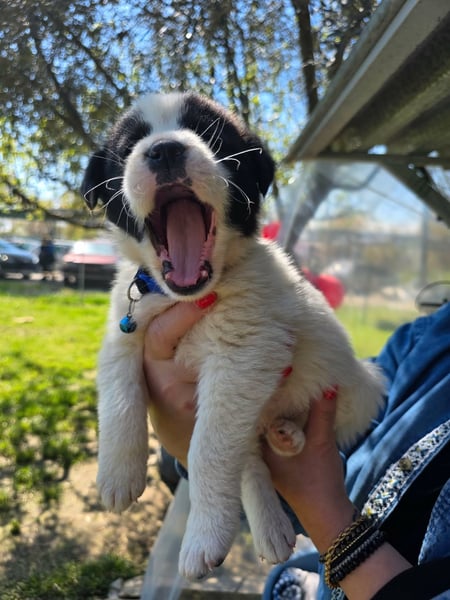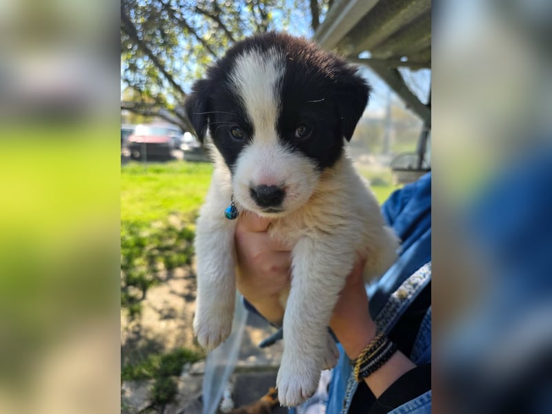 Der niedliche kleine Schatz wurde mit seinen Geschwistern einfach ausgesetzt und zum Glück gerettet. Panta wird mal ein großer und hat wahrscheinlich Hütehund-Anteile in sich.