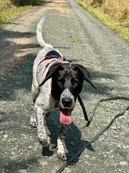 Mittlerweile bin ich ziemlich groß geworden, habe eine ca. Schulterhöhe von 66 cm und wiege rund 30 kg. Ein sehr stattlicher junger Hundemann, mit dem ab und an die Pferde durchgehen. Leider bin ich noch nicht kastriert, obwohl ich schon in einem kastrationsfähigen Alter bin.