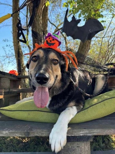 Wir durften Jack auf unserer letzten Bulgarienreise im Oktober 2025 persönlich kennenlernen. Er ist ein stattlicher junger Rüde, der auf seinem Hof gerne mal die Hosen an hat. Auf unserem gemeinsamen Spaziergang im Rudel machte er einen deutlich entspannteren Eindruck. Er lässt sich von seiner Bezugsperson sehr gut führen. Jack möchte gefallen und lässt sich damit sicherlich gut trainieren.