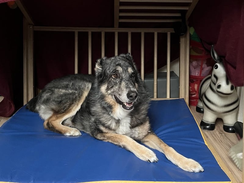 Willow ist eine liebenswerte, kluge und verspielte Hündin, die trotz ihres Alters voller Energie steckt. Wer sie erlebt, spürt schnell: In ihr schlägt ein junges, eigentlich fröhliches Herz. Sie liebt Bewegung, ausgedehnte Spaziergänge und neugierige Streifzüge durch Wald und Wiese – am liebsten bei Tageslicht und trockenem Wetter. Im Haus mag sie Ruhe und Nähe: Sie kuschelt gerne auf der Couch, schläft tief und entspannt auf ihrem Hundebett und verschenkt gerne ihre Zuneigung.