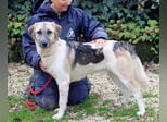 Skitter sucht vorsichtig Nähe, manchmal noch etwas unbeholfen, so wie jemand, der nie gelernt hat, wie man einfach anklopft. Mit Geduld lässt er sich darauf ein, zeigt kleine Spielmomente, ein Aufblitzen von Leichtigkeit – als würde er kurz testen, wie sich Vertrauen anfühlt.