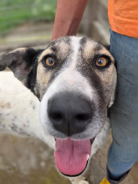 Chris wurde im Dezember 2023 von unserer rumänischen Tierschützerin Cristina aus der Tötung gerettet. Es war eine Rettung in allerletzter Sekunde. Chris wäre fast verhungert, sie war so stark dehydriert, dass niemand wusste ob sie es schaffen würde. Sie war buchstäblich nur noch Haut und Knochen. Cristina hat sie bei sich zuhause wieder aufgepäppelt und Chris hat sich zu einer wunderbaren Hündin entwickelt. Sie wurde im September 2019 geboren und ist groß. Chris ist katzenverträglich, sie lebte bei Cristina problemlos mit mehreren Katzen zusammen.