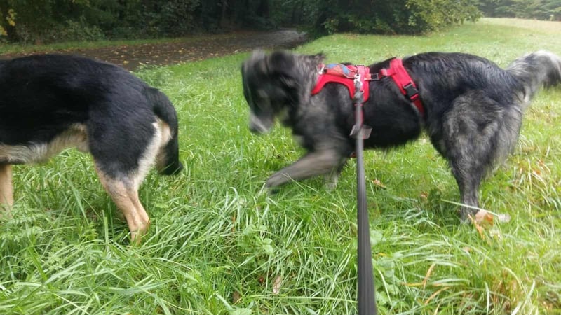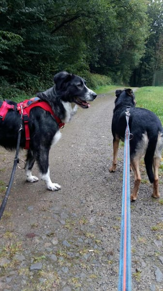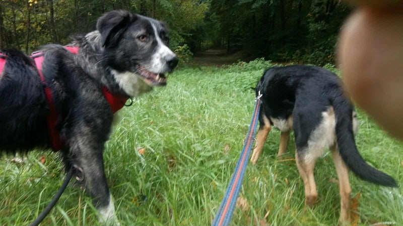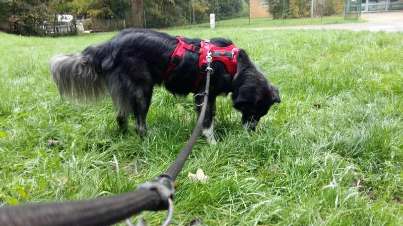 Ich laufe gut an der Leine. Gut, ein bißchen arbeiten müssen wir noch, dass ich auch noch alles ganz perfekt meistern kann, aber wie man sieht, ich bin gelehrig, super sozial und liebe einfach alles was da so auf mich zukommt. Fremden Hunden gegenüber zeige ich mich anfangs etwas lauter, muss denen erst mal zeigen, dass ich jetzt hier bin.