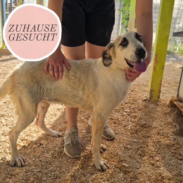 Rosa ist sehr wahrscheinlich ein Herdenschutzhund Mischling und sucht Menschen, die sich mit der Genetik dieser Rasse auseinandergesetzt haben und ihm ein Artgerechtes Leben ermöglichen können. Rosa ist nicht für die Vermittlung in ein urbanes Umfeld geeignet und sucht eine Familie, die in einem ruhigeren Umfeld lebt.