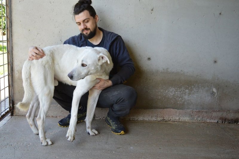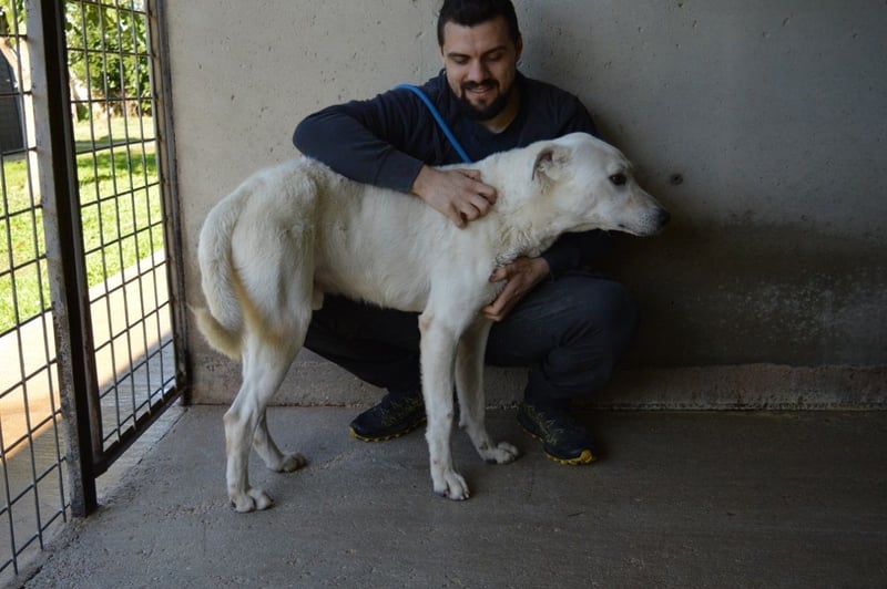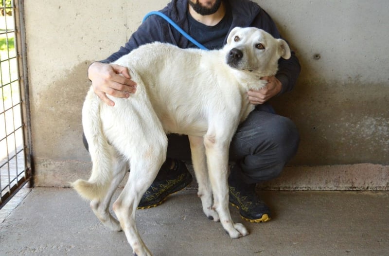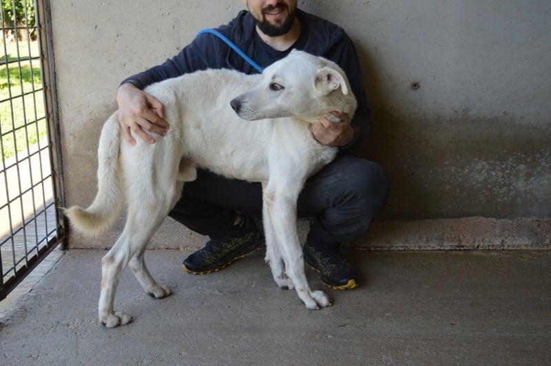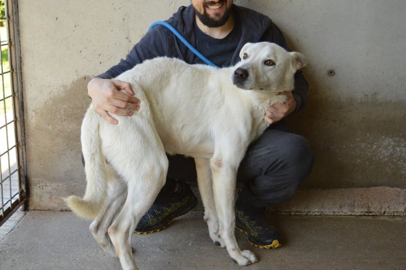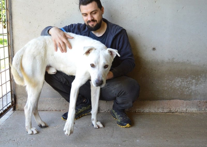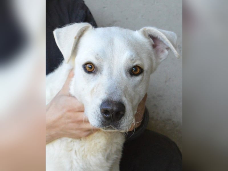 Benoit ist etwa 2 Jahre jung, groß und stattlich mit rund 66 cm Schulterhöhe. Wo der schneeweiße Bub seine Wurzeln hat und welche Gene in ihm schlummern, kann niemand sagen. Doch wenn man ihn so betrachtet, könnte man sich gut vorstellen, dass ein Hauch Maremmano oder etwas Labrador in ihm steckt. Aber wichtiger als seine Mischung ist sein Wesen: Er ist ein freundlicher, sozialer und unglaublich menschenbezogener Hund, der Nähe sucht und jede Zuwendung aufsaugt wie ein Verdurstender. Benoit ist körperlich in seiner Art, lebhaft, voller Gefühl und kaum stillzuhalten – nicht aus Übermut, sondern aus Sehnsucht! Er hat so lange gewartet und zu lange jemanden vermisst.