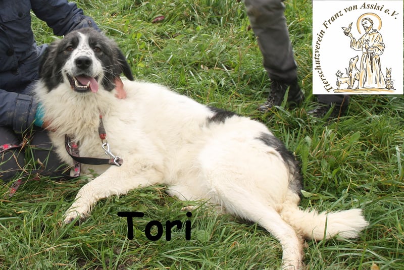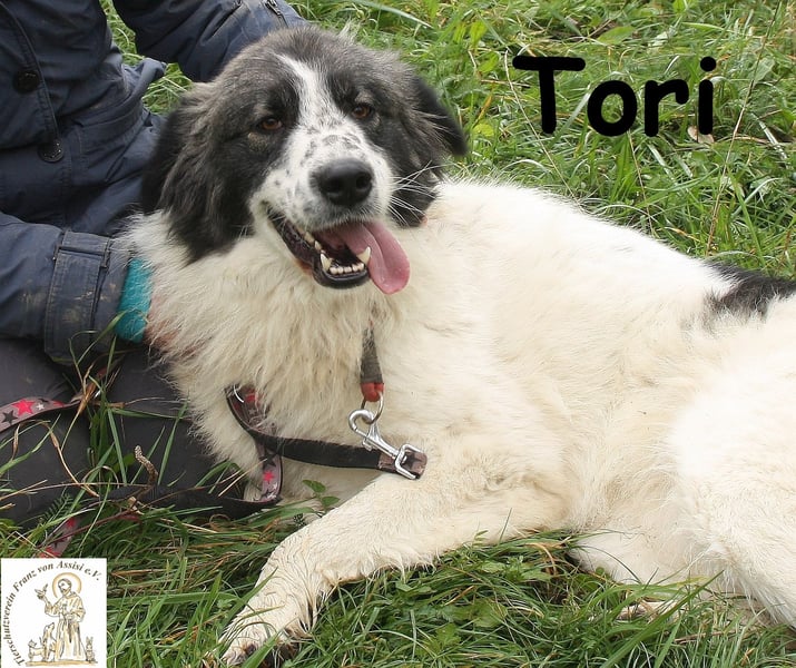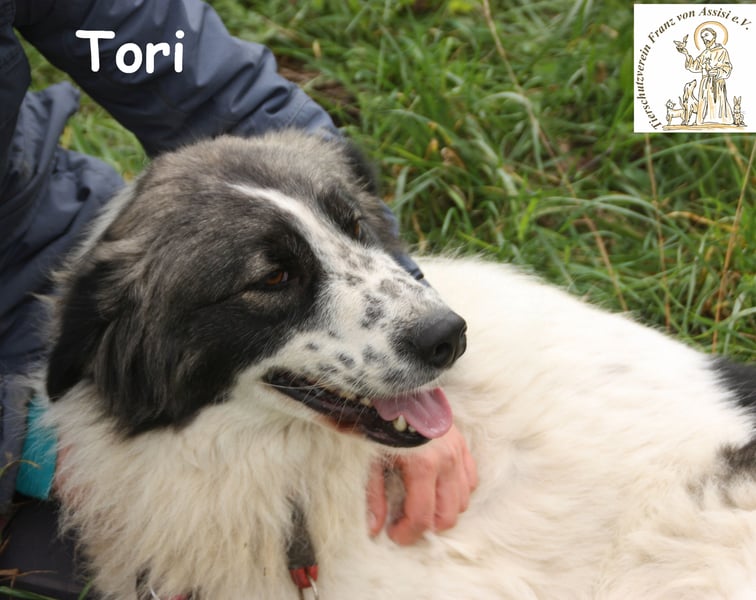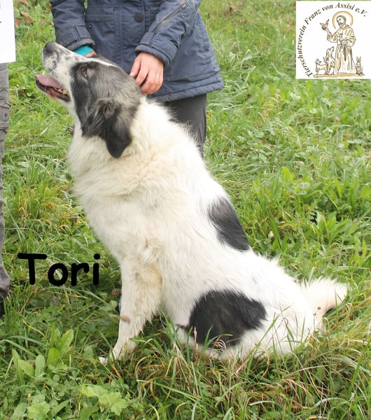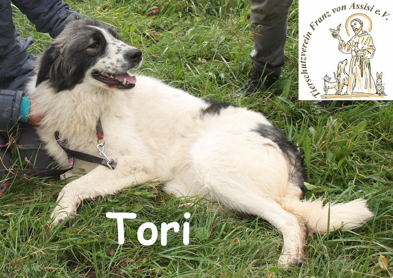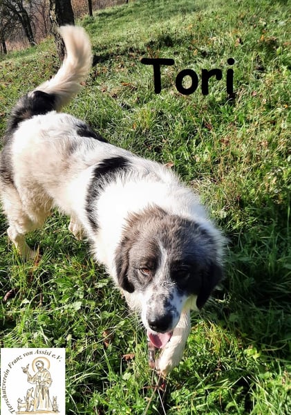 Auch Tori gehört zu jenen Hunden in bosnischen Zwingern, die Eingeweihten Rätsel aufgeben und Unbedarfte überraschen: Wie kann es sein, dass ein ehemaliger Straßenhund so an Menschen hängt, sich nichts sehnlicher wünscht als deren Zuneigung über ein bisschen Kraulen zu spüren? Und wie kann es sein, dass Mutter Natur, mit Genen diverser Rassen puzzelnd, Tori ein so hinreißendes Aussehen schenkte? Weißes, flauschig weiches Fell, mit grauen und schwarzen Flecken abgesetzt, dazu eine Zeichnung am Kopf, die einem die Hündin spontan ins Herz katapultiert.