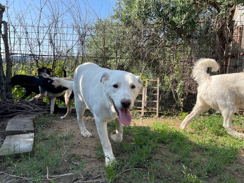 Unübersehbar steckt in ihm ein Anteil Maremmano. Der auf Sardinien weit verbreitete Herdenschutzhund hat überall seine Spuren hinterlassen. Inwieweit das bei Paco durchkommt, wenn er in seinem eigenen Zuhause ist, lässt sich nicht vorhersagen. Aber gewappnet mit liebevoller Konsequenz, Souveränität und dem Ziel einer guten, wertschätzenden Verbindung ist man gut gewappnet für das, was kommen mag.