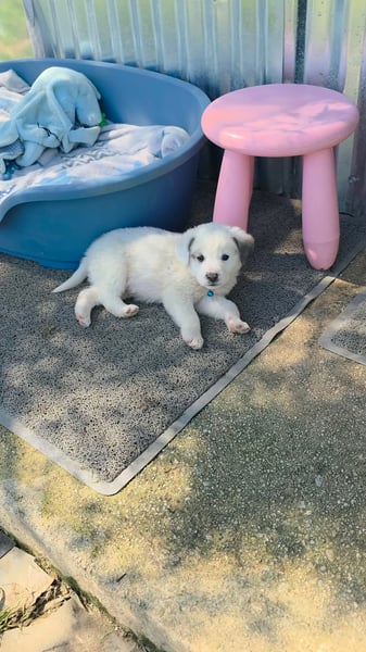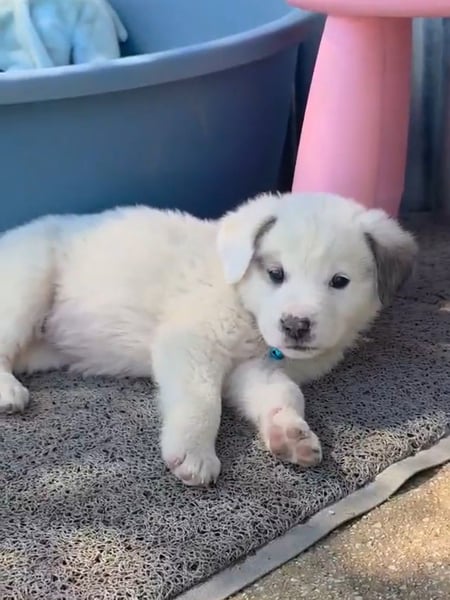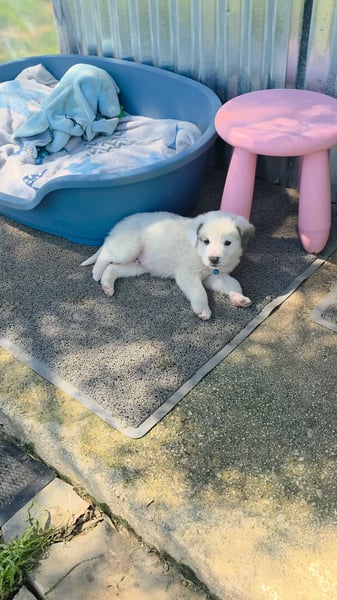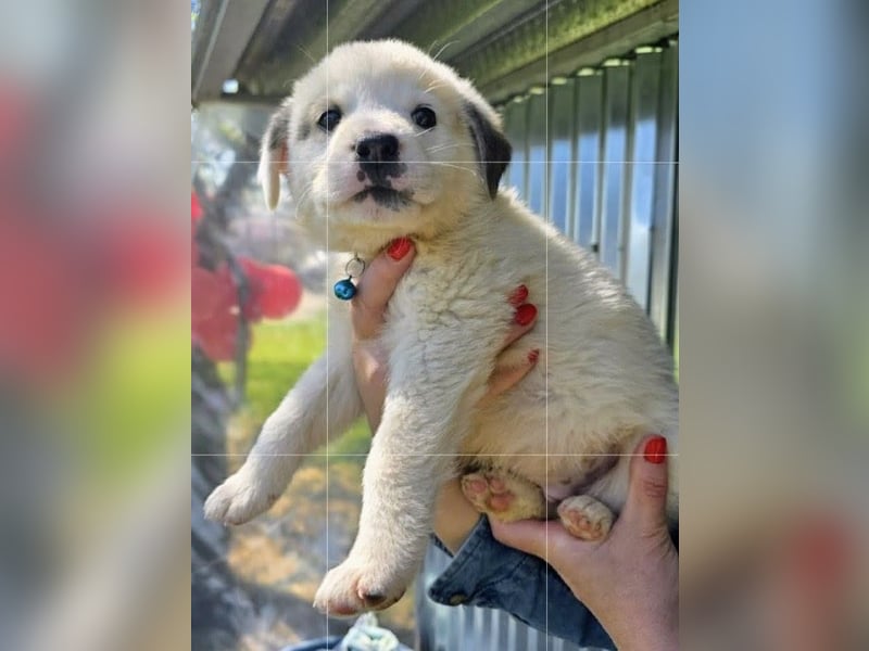 Der niedliche kleine Schatz wurde mit seinen Geschwistern einfach ausgesetzt und zum Glück gerettet. Kosmas wird mal ein großer und hat wahrscheinlich Hütehund-Anteile in sich.