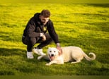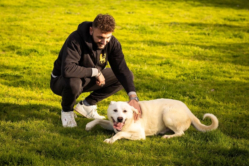 Junger Hundemann im schneeweißen Anzug, menschenbegeistert und altersentsprechend rundumverträglich sucht end-gültige familiäre Lebensaufgabe.
