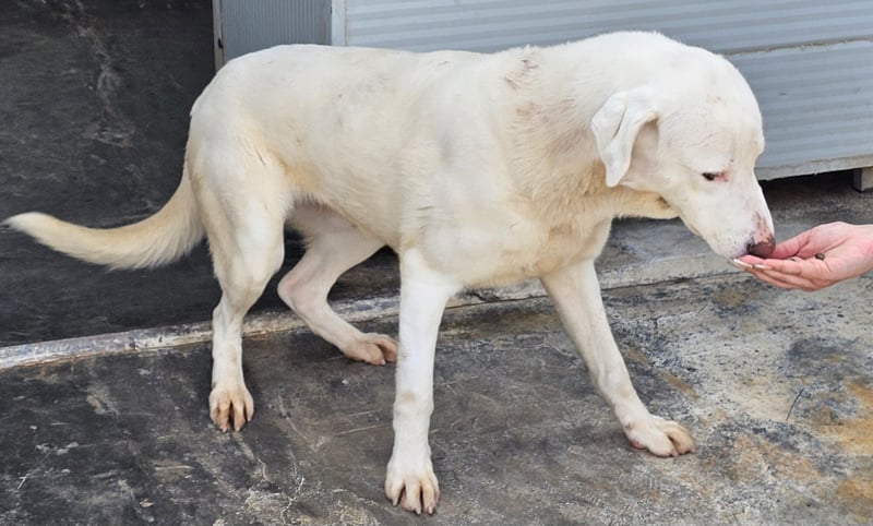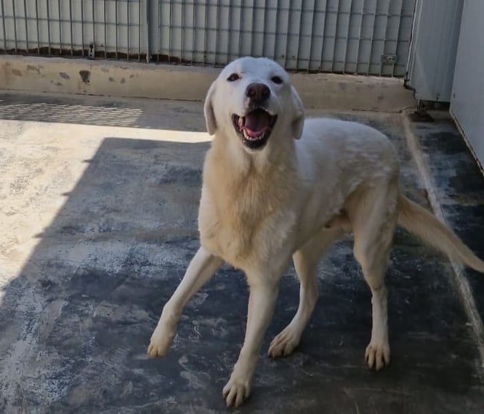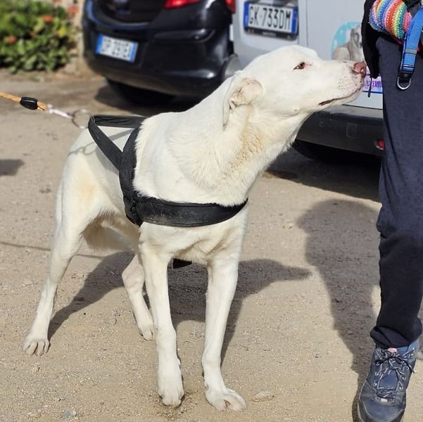 Gitano – einst ein kleiner, schüchterner Welpe, ist heute ein wunderschöner, stattlicher weißer Rüde geworden. Wir haben ihn im April erneut besucht und konnten beobachten, wie sehr sich sein Wesen in den letzten Monaten verändert hat. Derzeit lebt er mit einem anderen Rüden in einem abgelegenen Gehege im hinteren Bereich des Tierheims L.I.D.A. in Olbia. Obwohl es anfangs Schwierigkeiten in der Vergesellschaftung gab, verstehen sich die beiden mittlerweile sehr gut und harmonieren überraschend schön miteinander.
