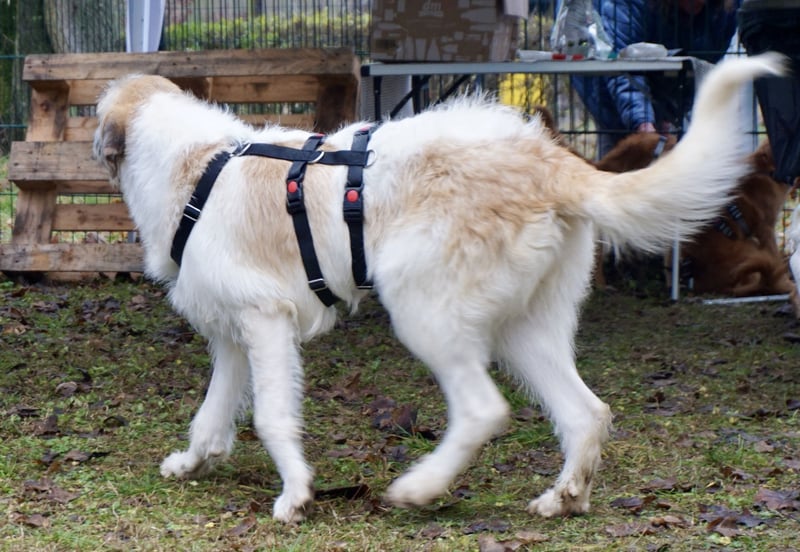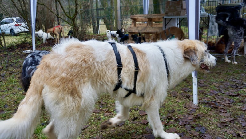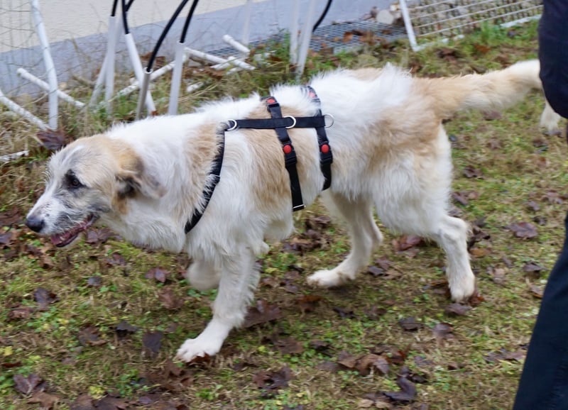 Gala läuft schon ziemlich gut an der Leine. Sie liebt alle Menschen und Hunde.
