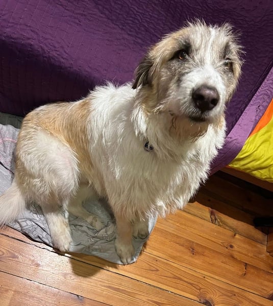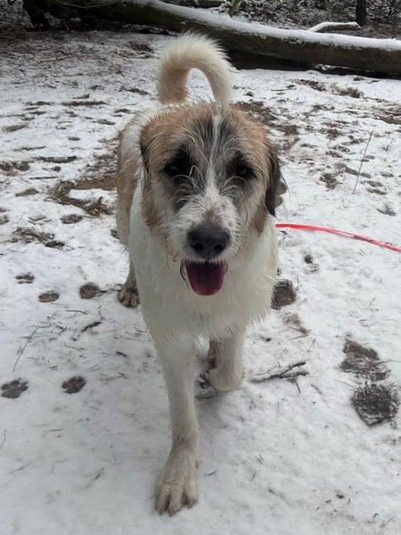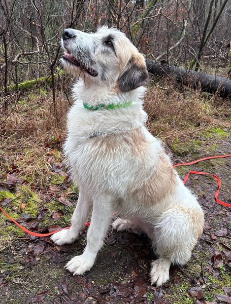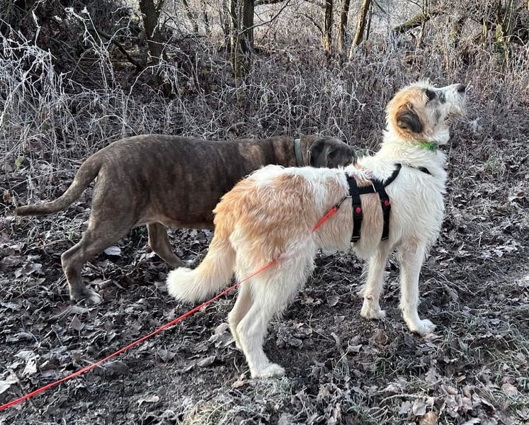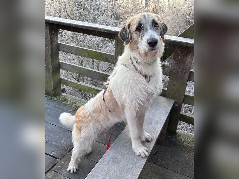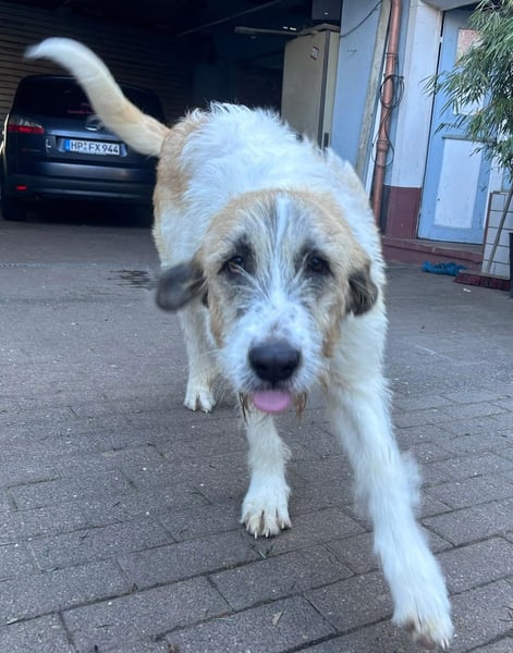Fussel/Gala, Mischlings-Mädchen, geboren am 15.02.2025, hat eine Schulterhöhe von ca. 60 cm und wiegt aktuell 37kg.