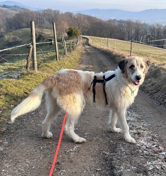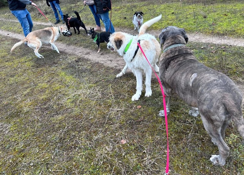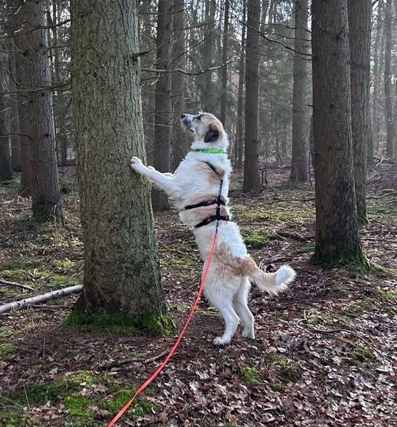 Fussel (ehemals Gala) ist eine freundliche, sehr verschmuste Hündin. Sie zeigt sich hier alterstypisch und ist junghundtypisch gerne auch aktiv auf ihren Spaziergängen unterwegs.