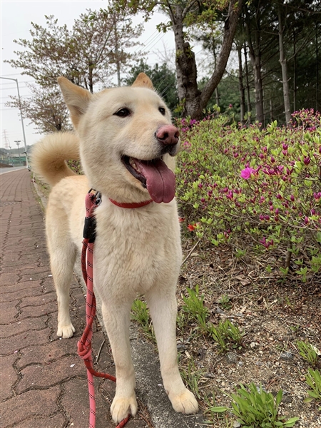 er wurde von der euthanasieliste gerettet und lebt jetzt auf einer Pflegestelle in korea wo er sich sehr positiv entwickelt.