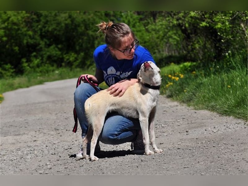 Unsere wunderschöne Bella wurde von engagierten Tierschutzkolleginnen aus einer Tötungsstation in Ungarn gerettet. So fand sie den Weg zu uns. Ihr großes Glück. Von ihrer Vorgeschichte wissen wir leider nichts. Bella hat sich im Tierheim sofort wohl gefühlt und zurecht gefunden. Ein sauberes Bett und streichelnde Hände. Ein voller Futternapf und nette Spielkameraden. Mit allen anderen Hunden hat sie sich gleich gut verstanden und zu den Menschen schnell Vertrauen gefaßt. Sie zeigt sich als sehr anhängliche und verschmuste Hündin. Sehr liebebedürftig und menschenbezogen. Sie ist mit jedem und allem freundlich. Bei fremden Menschen ist sie anfangs etwas zurückhaltend. Sie ist insgesamt eine ausgeglichene Hündin. Ein so genannter Katzentest ist vor Ort leider nicht möglich - es dürfte aber keine Probleme geben. Bella wird entwurmt, komplett geimpft, kastriert, mit Chip, EU-Pass, Schutzvertrag in allerbeste Hände gegeben. Geboren ca. 01/2022. Sie befindet sich aktuell in unserem Tierheim in Ungarn und kann ab sofort von uns persönlich direkt in ihr neues Zuhause gebracht werden - deutschlandweit. Wer schenkt der anmutigen Hündin endlich ein gutes Zuhause für immer? Ein Garten sollte vorhanden sein. Vorzugsweise ländlich oder am Stadtrand oder in einem grünen Viertel. Einen kuscheligen Sofaplatz würde sie auch nicht verachten. Gerne zu einer Familie mit größeren Kindern oder zu junggebliebenen Menschen, die ihr die schönen Seiten des Lebens zeigen und viel mit ihr unternehmen. Sie wäre auch als Zweithündin geeignet. Und/oder in einen Mehrgenerationen-Haushalt. Das neue Zuhause sollte harmonisch sein. Wir freuen uns über nette schriftliche Bewerbungen mit Name/Anschrift/Telefonnummer und einer ausführlichen Beschreibung der künftigen Lebenssituation des Hundes bei Ihnen. Spaßanfragen und Bewerbungen ohne diese Angaben können wir leider nicht mehr bearbeiten. Unsere Schützlinge befinden sich in der Regel in unserem Tierheim in Ungarn und können von uns persönlich direkt zu Ihnen nach Hause gebracht werden - deutschlandweit! Ein vorheriges Kennenlernen auf einer deutschen Pflegestelle ist leider nicht mehr möglich. Wir - erfahrene Hundeleute seit vielen Jahrzehnten im Tierschutz aktiv - beschreiben die Hunde so genau wie möglich. Weitere Informationen über unsere jahrzehntelange Tierschutzarbeit und einen kleinen Fragebogen finden Sie auf unserer Homepage www.spanische-tiernothilfe-auer.de Jemandem ein Tier in Obhut zu geben ist Vertrauenssache - für beide Seiten! Herzlichen Dank! Ihre Andrea Auer - Spanische Tiernothilfe in Zusammenarbeit mit der Hundehilfe Nordbalaton e.V. ❤️❤️❤️ ***************************************************************** Bitte haben Sie Verständnis, daß wir Bewerbungen ohne vollständige Anschrift, ohne Telefonnummer und ohne freundlichem Anschreiben od460er vorgefertigte Einzeiler nicht mehr bearbeiten können. Danke! *****************************************************************