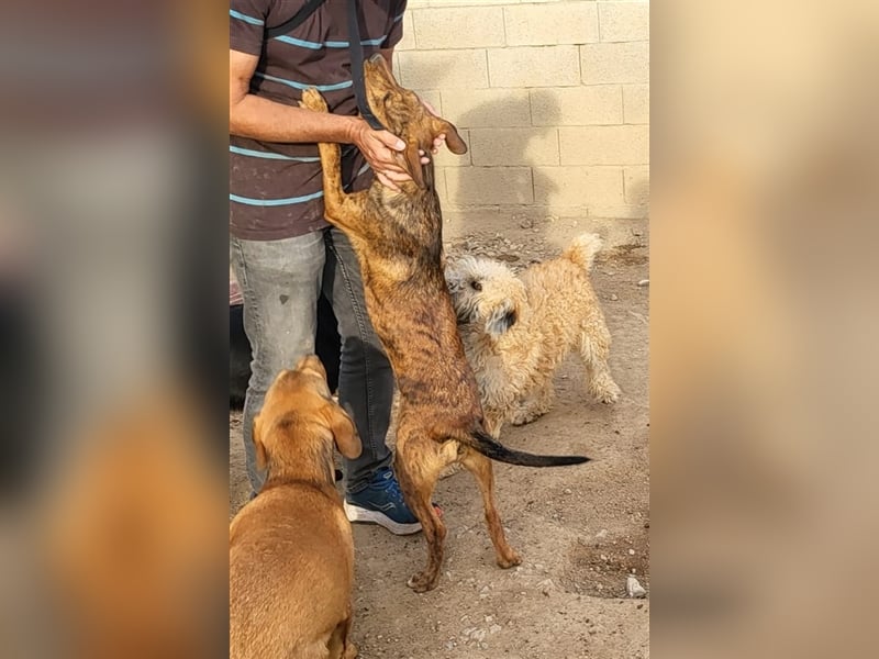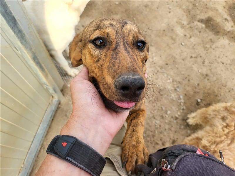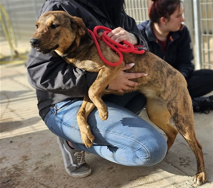 In diesen 2 Jahren, seit Berta bei uns in der Vermittlung ist, haben wir sie bei unseren Besuchen auf der Insel regelmäßig besucht. So auch im April 2025. Berta Cucciola ist eine ganz zauberhafte, menschenbezogene Hündin. Die wenigen Minuten, die wir in ihrem Gehege verbrachten, galt all unsere Aufmerksamkeit nur ihr und sie war so glücklich wie schon lange nicht mehr. Wie sehr würde sie sich über das Ticket ins Glück freuen. Stattdessen sitzt sie mit 2 Rüden im Gehege, der eine davon bestieg sie bei unserem Besuch ständig und ließ nicht von ihr ab. Berta erträgt es mit Fassung, aber ihr flehender Blick hat uns in völlige Alarmbereitschaft versetzt. Mit einem dicken Kloß fuhren wir nach Hause.