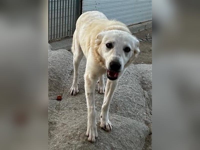 Helga zeigt sich im Tierheim als ruhige und neugierige Junghündin. Sie hat ein sehr angenehmes Wesen, möchte gerne gestreichelt werden und Aufmerksamkeit bekommen, ist dabei aber eher etwas zurückhaltend und überhaupt nicht aufdringlich. Inzwischen ist sie eine hübsche weiße Dame mit niedlichen Sommersprossen.