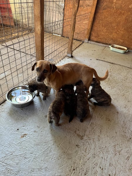 Die Welpen sind wohl ganz nach dem Papa - den wir natürlich nicht kennen - geraten, denn ihrer hellbraunen Mama sehen sie so gar nicht ähnlich...