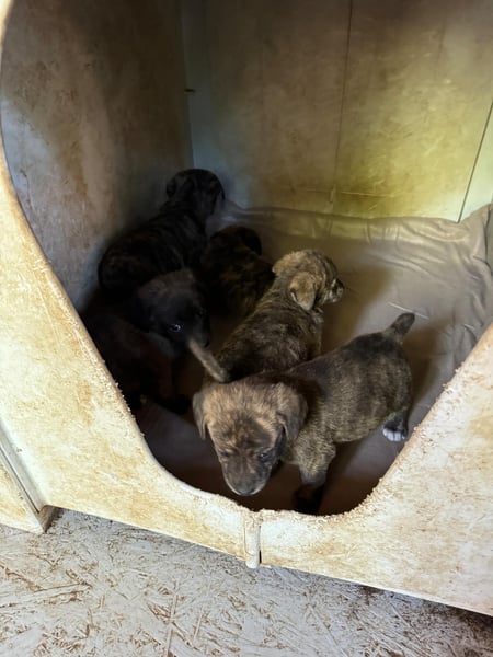 Die fünf Geschwister sind gestromt, jeder der Welpen hat eine etwas andere Fellzeichnung, aber alle sind bildhübsch.