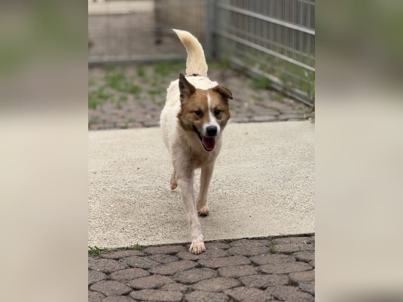 Adel ist eine aufgeschlossene, neugierige Hündin, die offen auf Menschen zugeht und ihre Umgebung aufmerksam beobachtet. Sie zeigt sich interessiert, freundlich und lernwillig – immer bereit, Neues kennenzulernen und sich auf unbekannte Situationen einzulassen. Ihr charmantes Wesen und ihre sanfte Art machen sie schnell zu einem echten Herzenshund.