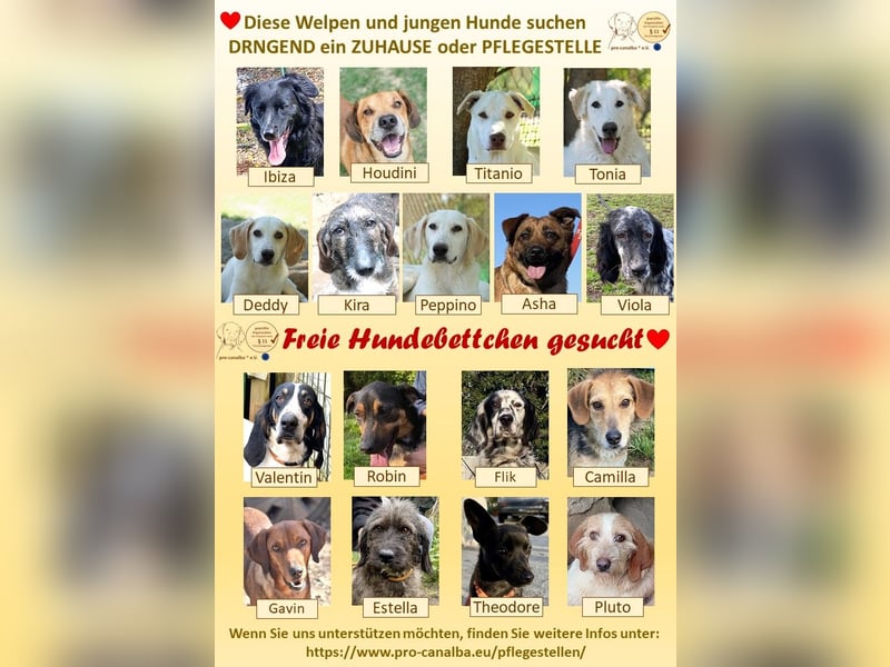 Es gibt kleine, mittelgroße und große Hunde bzw Welpen, Junghunde, Erwachsene und auch ältere Hunde, die aus ganz unterschiedlichen Gründen eine Pflegestelle benötigen.