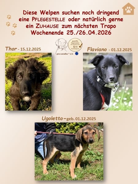 Für Elenio, Uffy und Ugoletto suchen wir dringend Pflegestellen (oder natürlich ein Zuhause), da ihre Geschwister adoptiert wurden und am 25./26. April in ihr Zuhause reisen. Wir wünschen uns von Herzen, dass Elenio, Uffy und Ugoletto nicht im Lager zurückbleiben müssen.