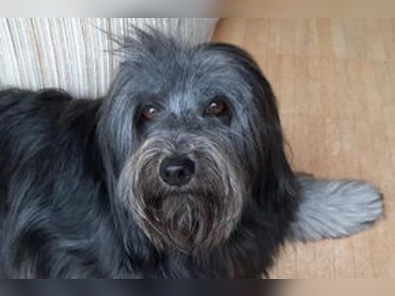 Filu wurde in Portugal geboren und verbrachte dort seine ersten viereinhalb Lebensjahre unter nicht so schönen Umständen. Im September 2022 kam er nach Deutschland. Die vielen unbekannten Eindrücke verunsicherten ihn anfangs sehr. Manches machte ihm auch große Angst. Neugierig und mutig entwickelte er sich zunehmend zu einem aufmerksamen Beobachter und lernte Schritt für Schritt, Ängste zu überwinden und sich zu orientieren. Zu den Menschen, die nun seine Familie waren, gewann er rasch Zutrauen. Zu seinem Menschen hat Filu eine enge Bindung entwickelt. Die Nachbarn im Haus werden von ihm freudig begrüßt und gerne besucht. Fremden Menschen begegnet Filu meist offen und neugierig. Mit anderen Hunden ist Filu gut sozialisiert. Er geht neugierig und achtsam auf sie zu, und manchmal fordert er auch zum Spielen auf. Auf der Straße an der Leine geführt kann er bei einem großen Hund auch mal in die Leine springen und bellen. Filu wird häufig von anderen Menschen als ein Tibet Terrier wahrgenommen. Auch sein Verhalten und sein Wesen lassen vermuten, dass davon etwas in ihm steckt. Für den erzieherischen Umgang wurde dies hilfreich, denn Leckerli brachten bei ihm keinen Erfolg. Filu hat vielmehr wie ein Hütehund die Bereitschaft mit seinem Menschen zu kommunizieren und zu kooperieren, er sucht die Nähe seines Menschen und orientiert sich an ihm. Er zeigt eine hohe Intelligenz und meistert gerne auch geistige Aufgaben. Filu ist mit seinen 8 Jahren noch ein vitaler Hund und gerne in der Natur unterwegs. Er läuft frei und genießt es, auch mal ein Stück kraftvoll voraus zu laufen. Dabei bleibt er in Blickweite und ist gut rückrufbar. Filu besitzt ein geschicktes Klettervermögen mit hoher Sprungkraft. So kann er gut zu einer Wanderung in die Berge mitgenommen werden. Auf seinen Spaziergängen und Wanderungen macht Filu dann gerne auch eine Pause. Einfach auf der Wiese liegen, die Luft schnuppern und sich den Bauch streicheln lassen ist auch schön, oder einfach auf einer Bank sitzen. Jagdverhalten zeigt Filu nicht. Er verfolgt jedoch gerne Katzen, wenn er sie draußen sieht. Er weiß, dass er das nicht machen soll. Heute ist Filu ein entspannter glücklicher Hund. Am meisten Angst machte ihm das Autofahren und das Alleinebleiben. Hier brauchte er viel Geduld und ein achtsames Vorgehen. In seinem Zuhause kann er mittlerweile 1 1/2 bis 2 Stunden alleine bleiben. In das ihm vertraute Auto springt er freiwillig und bleibt während der Fahrt ruhig. In einer Hundebox wird Filu nicht transportiert, da er darin bis heute große Angst zeigt. Auch die Enge eines Kofferraums verursacht bei ihm Panik. Mit liebevoller Zuwendung ohne Druck und Zwang hat Filu viel geschafft. Aufgrund einer Erkrankung in der Familie kann Filu leider nicht mehr versorgt werden und sucht nun ein neues Zuhause.