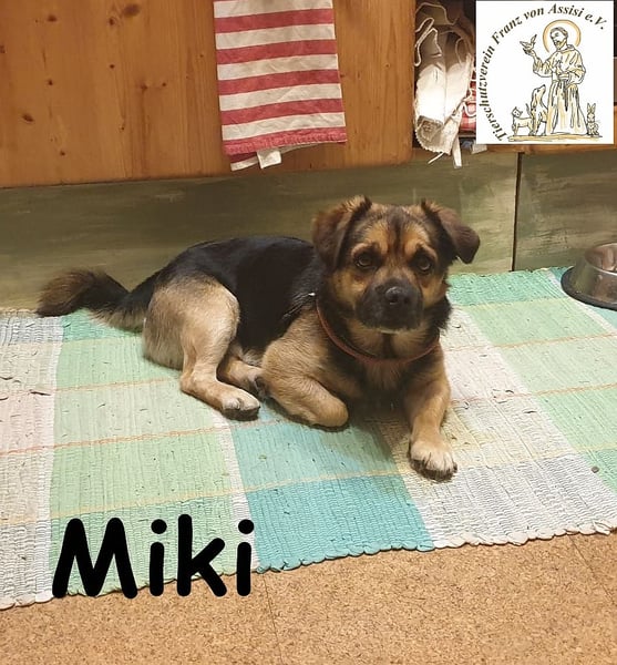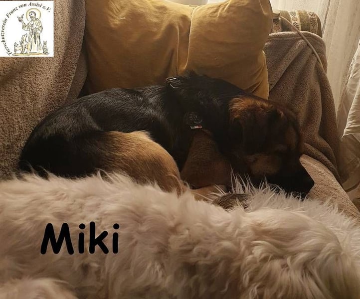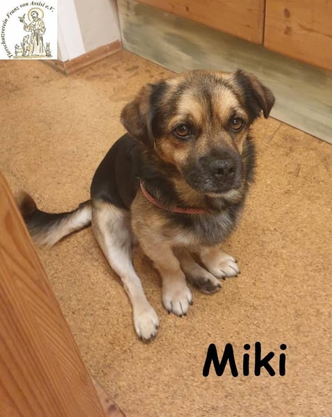Miki versteht sich mit anderen Hund und Katzen im gemeinsamen Zuhause und Rudel. Außerdem fährt er sehr gerne im Auto mit. Besucher werden von Miki bellend begrüßt, er beruhigt sich jedoch schnell wieder. Er bleibt noch nicht so gern alleine, das sollte weiter geübt werden.