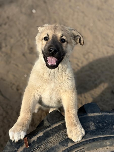 Der herzige Nash kam am 19.12.2025, zusammen mit seiner Mama Nayeli und seinen elf Geschwistern, sowie 5 weiteren Hunden ins Tierheim nach Kecskemét. Es fand eine große Beschlagnahmung statt und da es so viele Hunde waren, wurden sie auf verschiedene Shelter in ganz Ungarn verteilt. Endlich hat das Gericht die Hunde freigegeben und wir können sie in die Vermittlung nehmen. Ihnen ist ein trauriges Leben zum Glück erspart geblieben. Mama Nayeli lebte an der Kette und bekam auch dort in einem Erdloch ihre Welpen. Was für eine tapfere und wundervolle Hündin. Dass alle zwölf Welpen überlebt haben, grenzt an ein Wunder. Wir drücken der ganzen Hundefamilie fest die Daumen, dass das Tierheim nur eine kurze Zwischenstation bleibt!