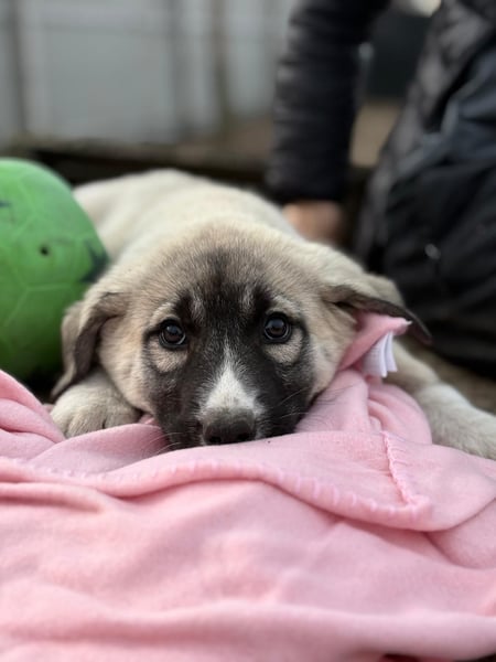 Der herzige Nils kam am 19.12.2025, zusammen mit seiner Mama Nayeli und seinen elf Geschwistern, sowie 5 weiteren Hunden ins Tierheim nach Kecskemét. Es fand eine große Beschlagnahmung statt und da es so viele Hunde waren, wurden sie auf verschiedene Shelter in ganz Ungarn verteilt. Endlich hat das Gericht die Hunde freigegeben und wir können sie in die Vermittlung nehmen. Ihnen ist ein trauriges Leben zum Glück erspart geblieben. Mama Nayeli lebte an der Kette und bekam auch dort in einem Erdloch ihre Welpen. Was für eine tapfere und wundervolle Hündin. Dass alle zwölf Welpen überlebt haben, grenzt an ein Wunder. Wir drücken der ganzen Hundefamilie fest die Daumen, dass das Tierheim nur eine kurze Zwischenstation bleibt!