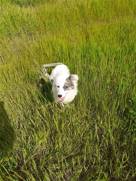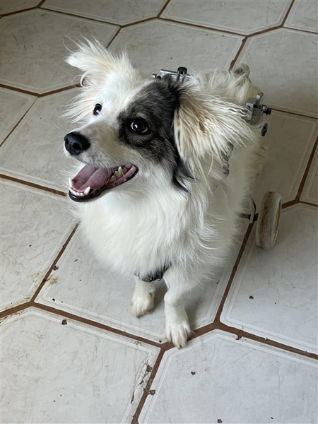 Leider war dem nicht so, und so besorgten wir dem quirligen Hundemädel einen Rolli - mit dem sie auch sofort zurechtkam und seither durch die Gegend flitzt.