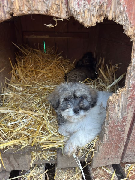 Zum Glück stehen aber noch Maschinen auf dem Hof, die noch im Einsatz sind , so dass ab und zu jemand dort vorbei kommt und die Hundekinder entdeckt wurden.