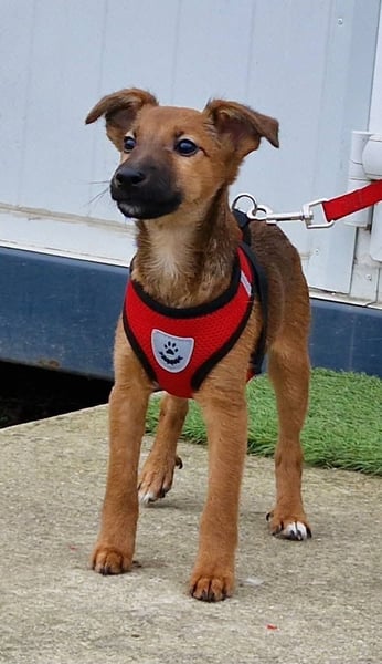 Dalia ist sehr zart, lieb und verspielt. Anfangs manchmal noch etwas ängstlich, taut sie schnell auf. Mit anderen Hunden versteht sie sich bestens und wächst in einer großen Hundegruppe auf.