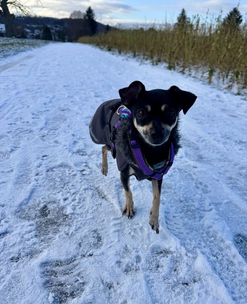 Eine leichte Patellaluxation ist bekannt, schränkt sie jedoch derzeit nicht ein. Sie bewegt sich normal und zeigt im Alltag keine Auffälligkeiten.