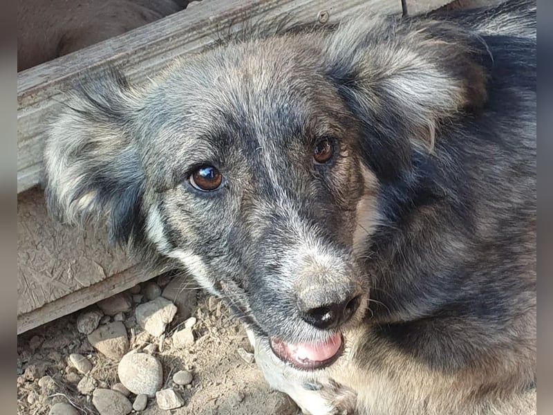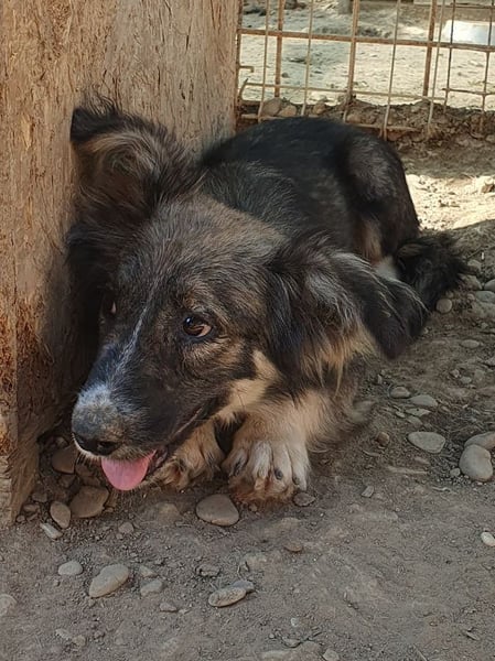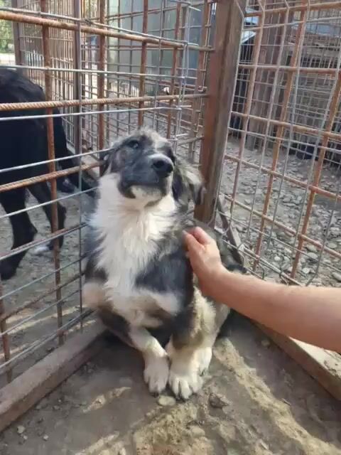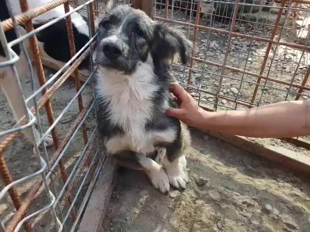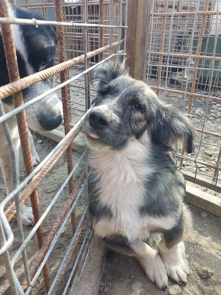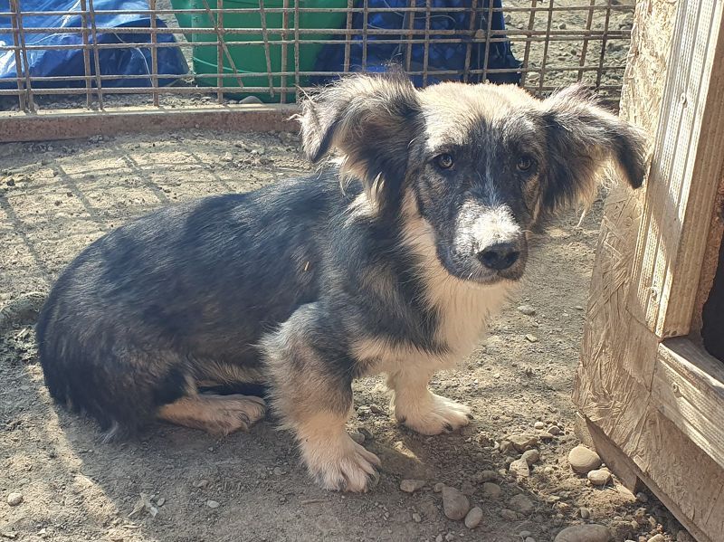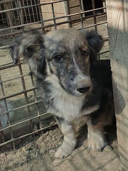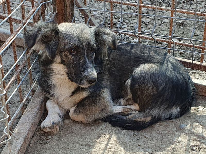 Dieser wunderschöne kleine Kerl konnte unseren Besuch nicht wirklich einschätzen. Er hat die Fellzeichnung eines „Australian Shepherd“, doch seine Beine sind etwas zu kurz geraten. Mit einer Schulterhöhe von ca. 35 cm gehört er nicht zu den Riesen. Zu uns Menschen hat er noch nicht das richtige Vertrauen aufgebaut. Trotzdem blieb er in unserer Nähe und schaute dem Treiben zu. Nachdem wir ihn in einer Ecke fixiert hatten, konnten wir ihn auch anfassen, doch er wollte schnell wieder auf Abstand zu uns. Aber mit einem Jahr wird er sicherlich schnell auftauen und die Sicherheit bei uns Menschen suchen. Mit viel Geduld und Ruhe wird das auch schnell passieren. Hier ist Erfahrung mit unsicheren Hunden gefragt. Oft hilft ein souveräner Ersthund, der diesem kleinen Kerl einen Weg in eine schöne Zukunft ermöglicht.