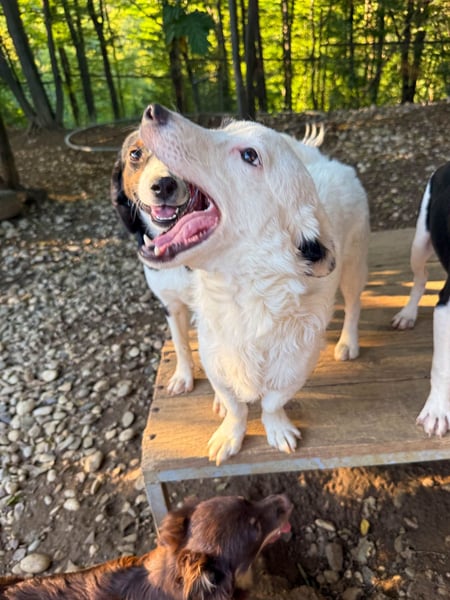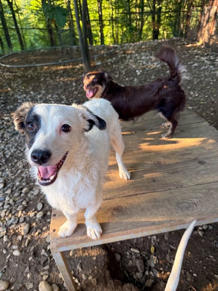 Wie es sich für junge Hunde in meinem Alter gehört, bin ich wahnsinnig neugierig, verspielt und wusele den lieben langen Tag fröhlich umher. Zusammen mit meinen Brüdern halte ich den Laden hier ganz schön auf Trab! Auch mit den anderen Hunden verstehe ich mich blendend und wenn die Menschen vorbeikommen, begrüße ich sie voller Elan und bin jederzeit bereit für eine Spiele- oder Kuschelrunde. ☺️