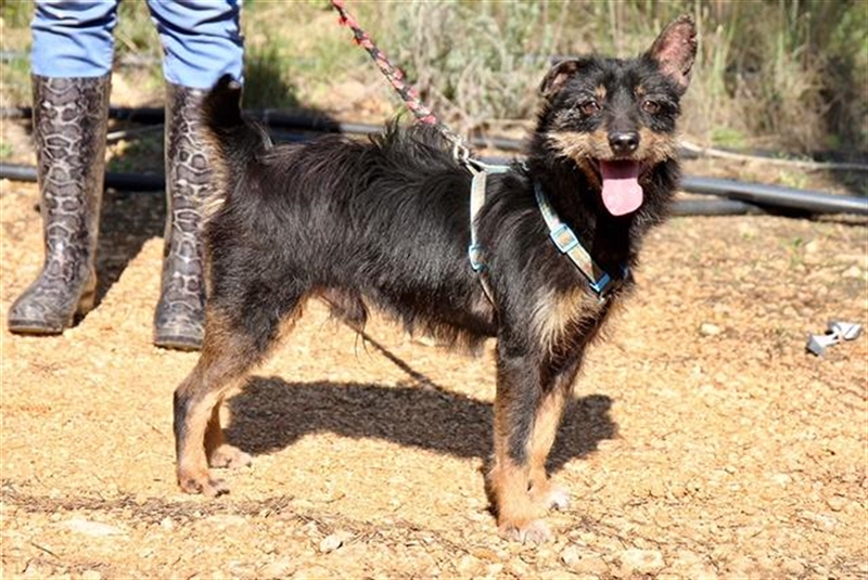 Ein kleines schwarz-braunes-Knäul mit großen Augen das ist unser Toupie. Er ist ein lieber und freundlicher kleiner Rüde, ca. 32 hoch, der an den Zaun gesaust kommt, sobald auch nur die Chance besteht, er könnte ein paar Streicheleinheiten abbekommen.