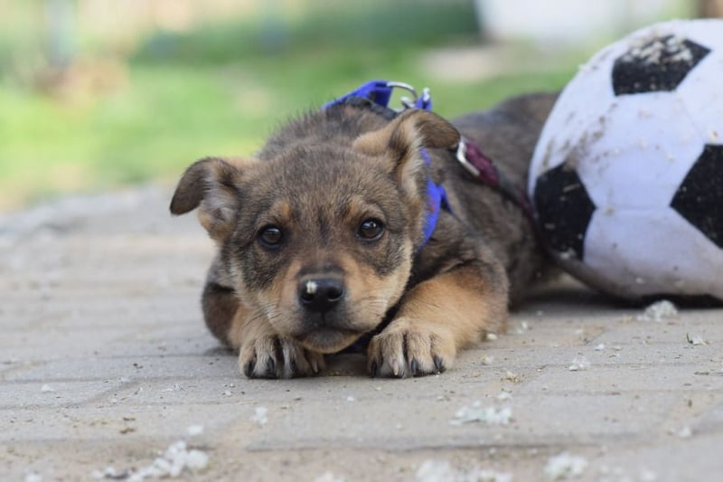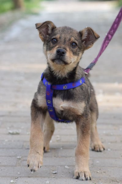 Obwohl Melitta das Hunde-1x1 noch lernen muss, zeigt sie bereits gute Fortschritte bei der Leinenführigkeit. Ihre endgültige Größe lässt sich nicht genau vorhersagen, aber wir vermuten, dass sie mittelgroß werden könnte.
