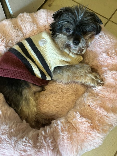 Der kleine Dan stammt aus dem Tierschutz und hat bereits ein bewegtes Leben hinter sich. Viele Jahre verbrachte er angekettet, bevor er schließlich in unser Partnertierheim kam. Als wir ihn dort entdeckten, war schnell klar, dass dieser winzige Hund den harten Bedingungen vor Ort kaum gewachsen war. Kälte, Schnee und ein stark verfilztes Fell machten ihm sichtbar zu schaffen, sodass entschieden wurde, ihn auf eine Pflegestelle zu bringen.