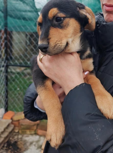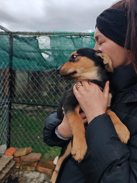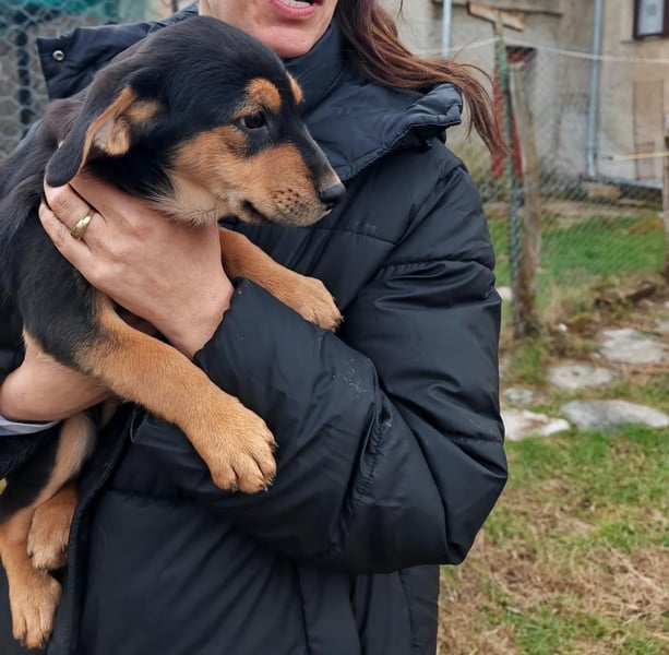 Eine der Welpies ist Mia. Sie ist freundlich, aufgeschlossen und genießt menschliche Berührungen. Und auch an Katzen gewöhnt.