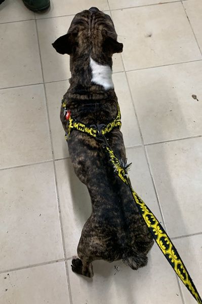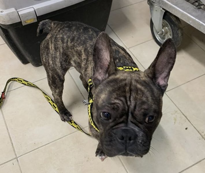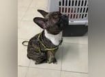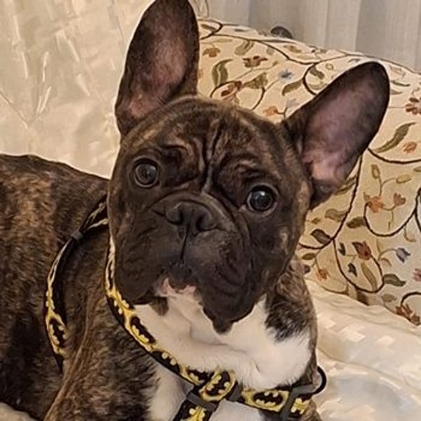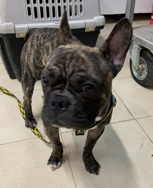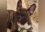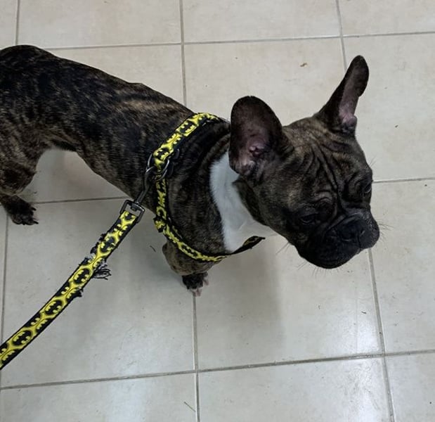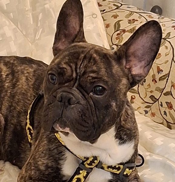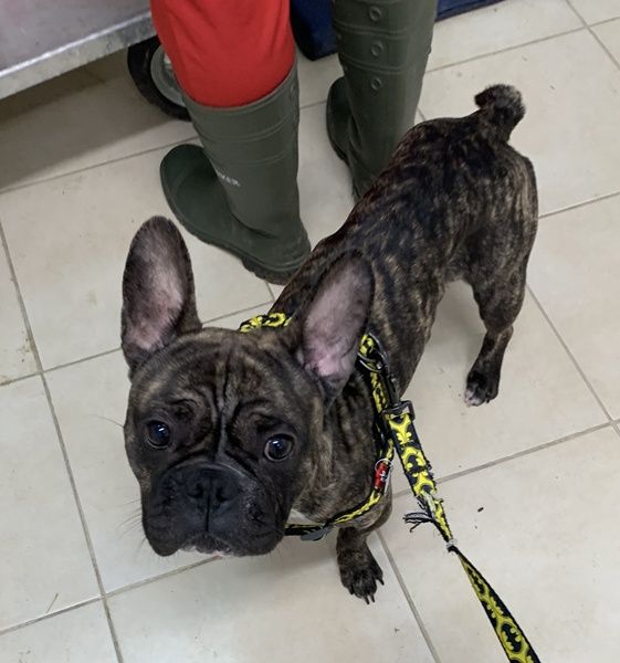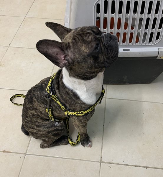 Bei Bruno-Franz handelt es sich vermutlich um eine reinrassige Französische Bulldogge. Er hat ein hübsches gestromtes Fell und die typischen großen Fledermausohren. Angemerkt sei an dieser Stelle, dass es sich bei dieser Rasse um eine Qualzucht handelt und somit einige typische gesundheitliche Probleme auftreten können (aber nicht müssen).
