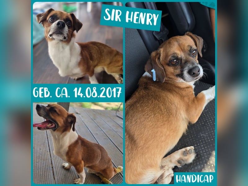 Sir Henry, kleiner 7 jähriger Rüde mit Handicap, Dackel Charakter, dominant, weiß was er will, lieb,