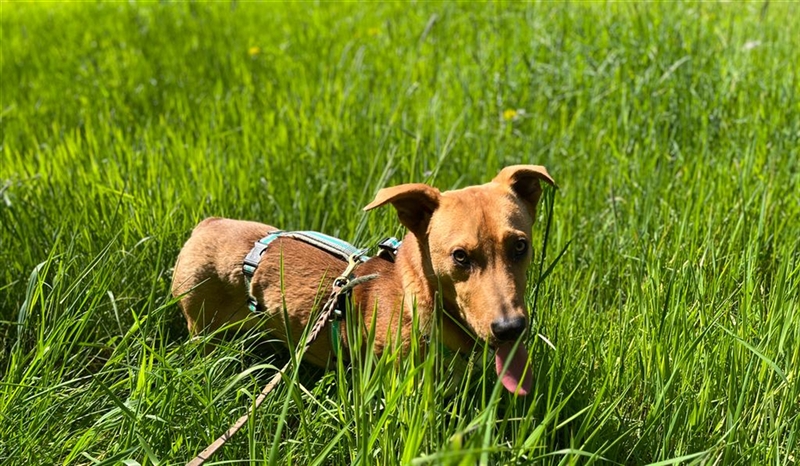 Andy streift sehr gerne stundenlang durch Wälder und Wiesen, er schnüffelt gerne und sucht gerne Leckerlis im hohen Gras. Ich kann mir sehr gut vorstellen, dass Andy ein großer Meister in Schnüffelarbeit wird.