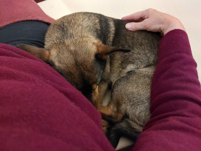 Saia fährt gerne im Auto mit. Alleine bleiben kann sie noch nicht lange, das wird auf der Pflegestelle kleinschrittig geübt.