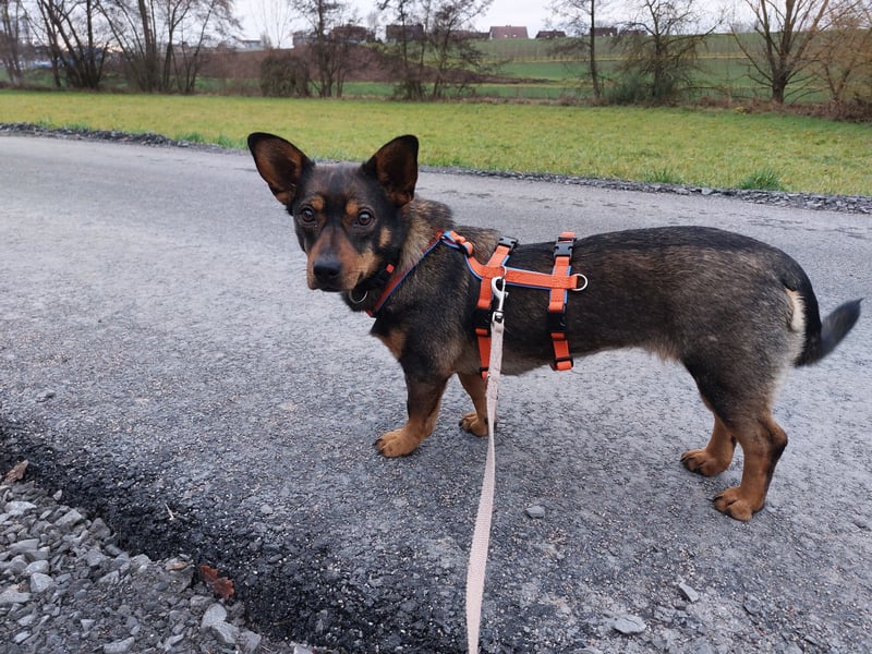Gassi gehen findet sie ganz toll, ist flott und ausdauernd an der Schleppleine unterwegs, mit der Nase meistens am Boden. Vermutlich hätte sie gelegentlich auch mal Lust auf einen kleinen unerlaubten Jagdausflug. Sie lässt sich aber gut auf ihren Menschen fokussieren, vor allem, wenn Leckerchen im Spiel sind. Mit Futter ist sie hoch motivierbar, dabei aber nicht futterneidisch, nur einfach sehr schnell, sodass ihr Hundefreund das Nachsehen hat, wenn er das Leckerchen verfehlt.