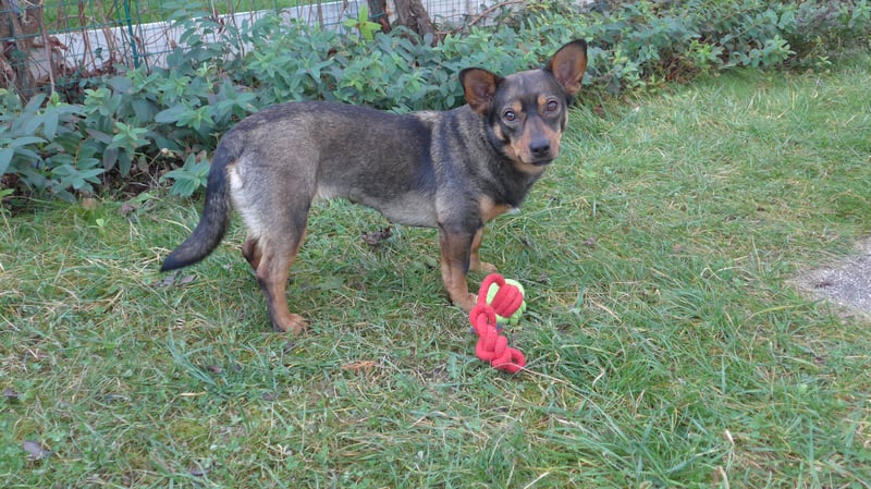 An anderen Hunden ist sie sehr interessiert, nur manchmal zurückhaltend und schreckhaft, wenn der andere Hund laut und stürmisch ist. Das legt sich aber bei einer weiteren Begegnung. Gerne sucht sie in Situationen, in denen sie sich ein wenig fürchtet, Schutz hinter den Beinen ihres Pflegefrauchens.