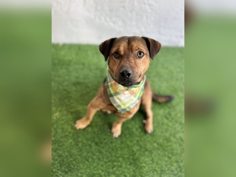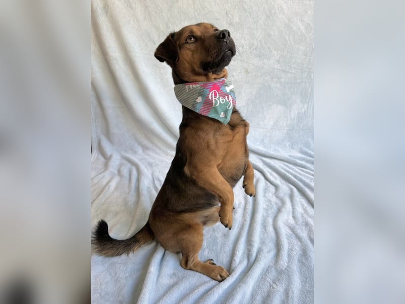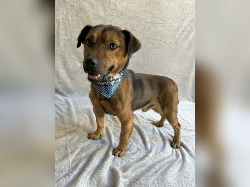 Landon wurde am 1. Oktober 2023 geboren und ist mit seinen rund 35–40 cm Größe und etwa 10,5 kg ein kleiner, zarter Mischlingsrüde mit großem Herz. Sein Schicksal berührte alle im Tierheim tief: Völlig verängstigt und verzweifelt lief er auf der Straße direkt neben dem Tierheim umher und rannte vorbeifahrenden Autos hinterher – in der Hoffnung, dass sein Besitzer zurückkehren würde. Erst als der Hunger zu groß wurde, ging er in eine aufgestellte Falle, und so konnte er endlich in Sicherheit gebracht werden.