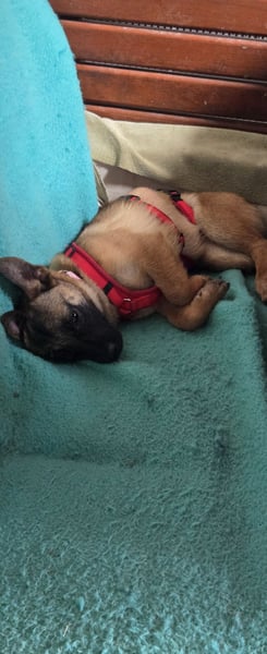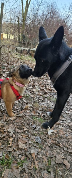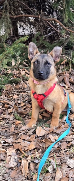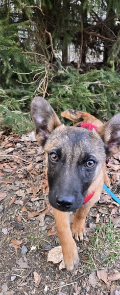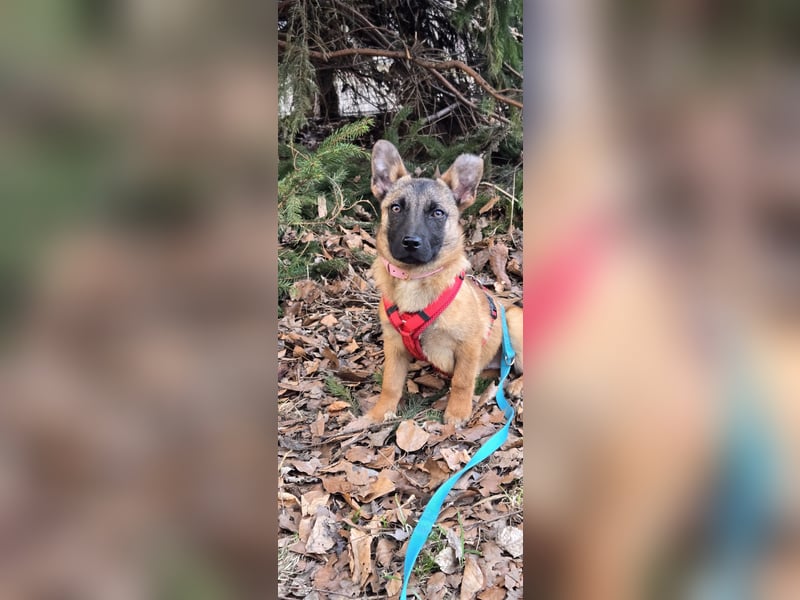 Mein Pflegefrauchen nennt mich liebevoll Minnimi denn ich bin ein Malinoi in Chiwauwau Größe. Ja ihr habt richtig gelesen. Ich bin gerade mal so groß wie ein Chiwauwau sehe aber aus wie in Malinoi. Ob da von den größeren etwas in mir drin steckt kann ich euch nicht sagen aber ich bin auf jedenfall genau so schlau. Vielleicht bekomme ich wenn ich ausgewachsen bin eine Schulterhöhe zwischen 30&40 cm. Geboren wurde ich in Rumänien und hatte dort in Isolation gelebt damit ich kein Parvo bekomme. Ich habe deshalb bevor ich in Deutschland an kam noch nichts kennengelernt. Zuerst musste ich die Quarantäne überstehen. Dort habe ich mich ziemlich versteckt wenn jemand rein kam und ich konnte nicht so recht aus meiner Haut. Als es dann aber mit zu meinem Pflegefrauchen mit nach Hause ging, habe ich ganz schnell gemerkt wie toll doch eigentlich alle sind. Seit dem mache ich ganz tolle Fortschritte. Ich laufe mittlerweile frei im Rudel und komme gut wenn ich gerufen werde. Ich liebe es mit dem Menschen zu lernen aber ich muss auch noch viel lernen. Ich bin mit meinem Pflegefrauchen schon an der Straße gelaufen und wir waren auch schon im Fressnapf. Tagsüber bin ich mit in ihrer Tierpension. Abends gehe ich mit heim. Das sauber sein klappt noch nicht zu 100 % aber hey ich bin ja auch erst fünf Monate und im Zahnwechsel.