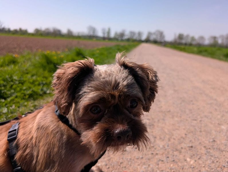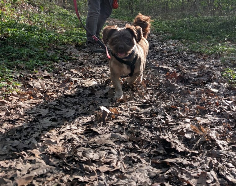 An der Leine laufe ich auch ganz brav. Ich bin eine ziemlich entspannte Begleiterin, freue mich total über Aufmerksamkeit und Streicheleinheiten, kann aber auch einfach gemütlich dabei sein, schnüffeln und die Welt beobachten.